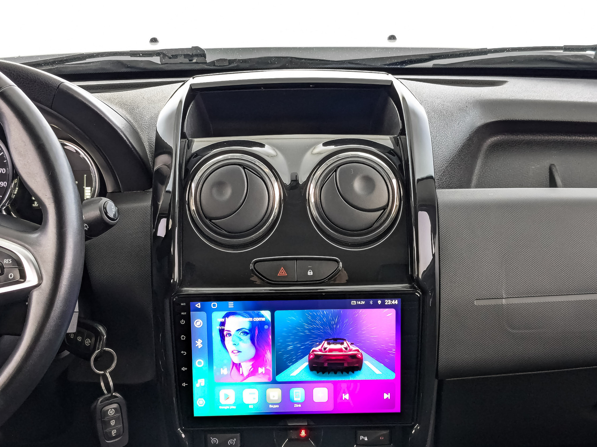 - Новая тканевая обивка с отличительной строчкой и надписью DUSTER